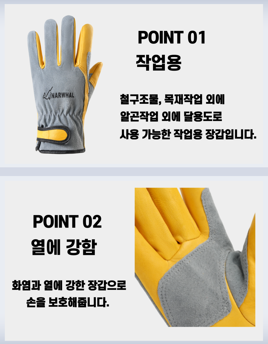 최고급돈피를 사용하여 내구성과 손의 움직임이 좋음 손바닥 부분의 양가죽 + 돈피로 이중덧댐하여 내마모성 강화 손목 주름으로 편안함 움직임 손목 벨크로를 통하여 조절과 탈착 용이 면안감으로 부드러운 착용감과 땀흡수율 증가내용 알곤용접, 건설, 그라인딩, 샌딩, DIY, 캠핑, 조경, 원예, 바베큐 등